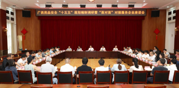 2025年8月15日,广西药品平安“十五五”规划编制调研暨“面临面”对接办事企业座谈会正在南宁召开。(广西药监局供图)。