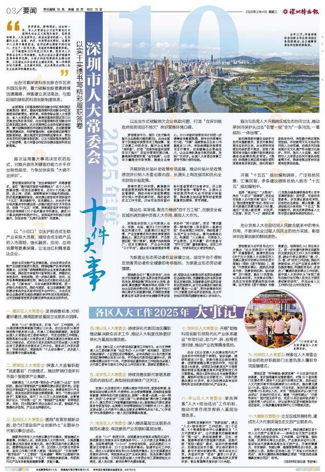 以下梳理的2025年度10件大事,既是市常委会全年工做的缩影,也是以力量护航城市成长的明显注脚。从帮力科技立异到平易近生福祉保障,每一件都紧扣时代脉搏、立脚城市现实,充实展示全过程人平易近正在深圳的兴旺朝气。