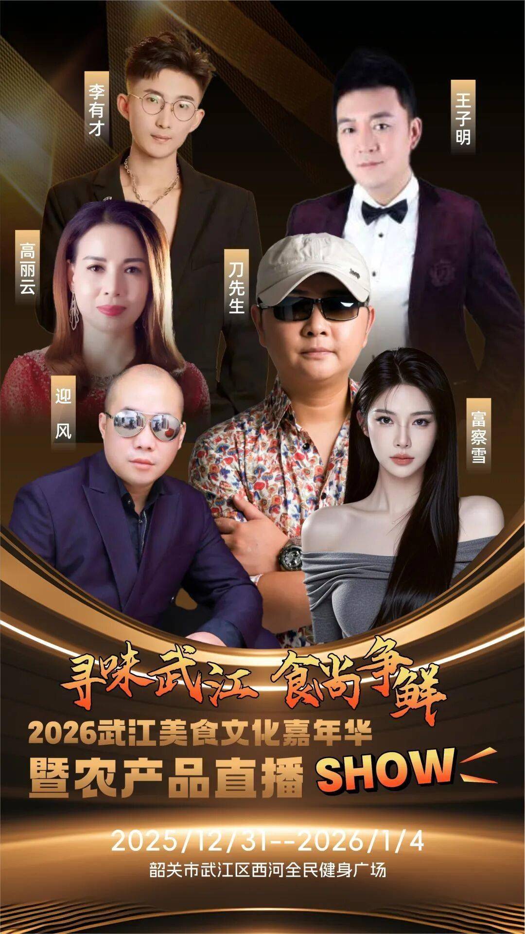 新年新景象形象,美食送新春!12月31日一场集美食、文化、文娱取帮农曲播于一体的“寻味武江·食尚争鲜”美食嘉韶华暨村落复兴帮农曲播show,将正在韶关市武江区西河全平易近健身广场隆沉。